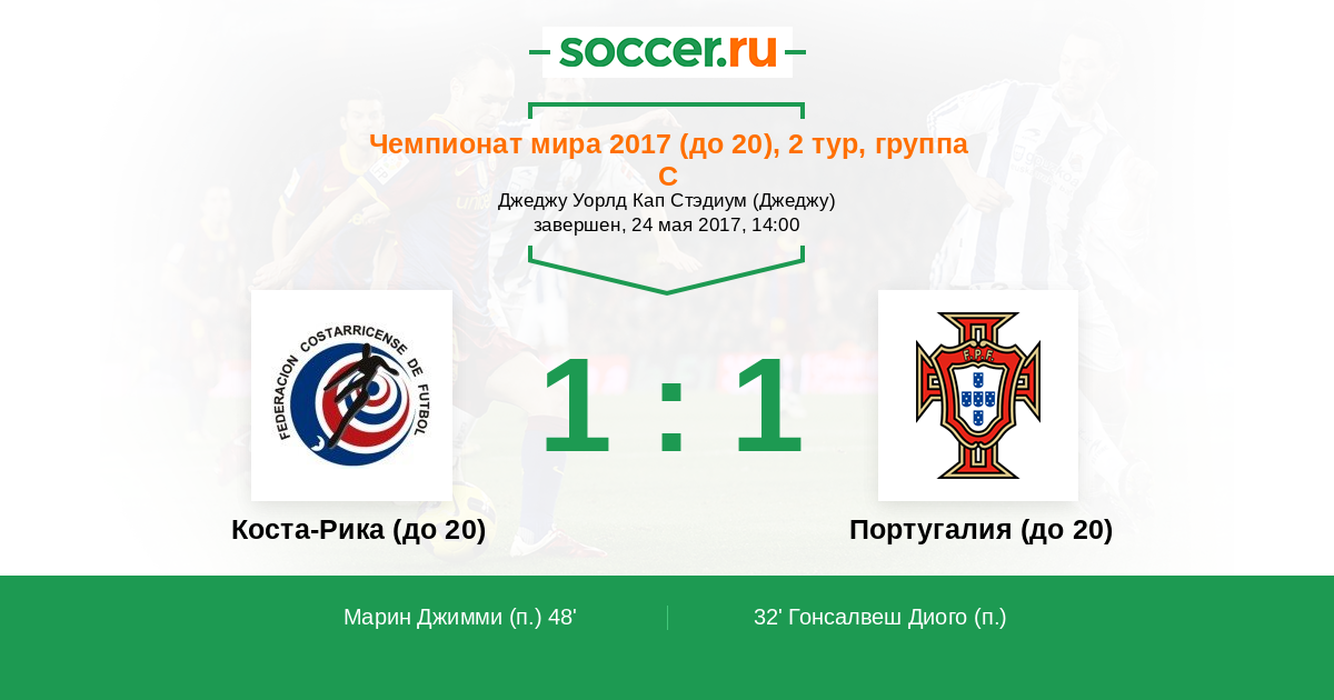 Протокол матча Коста-Рика (до 20) против Португалия (до 20)