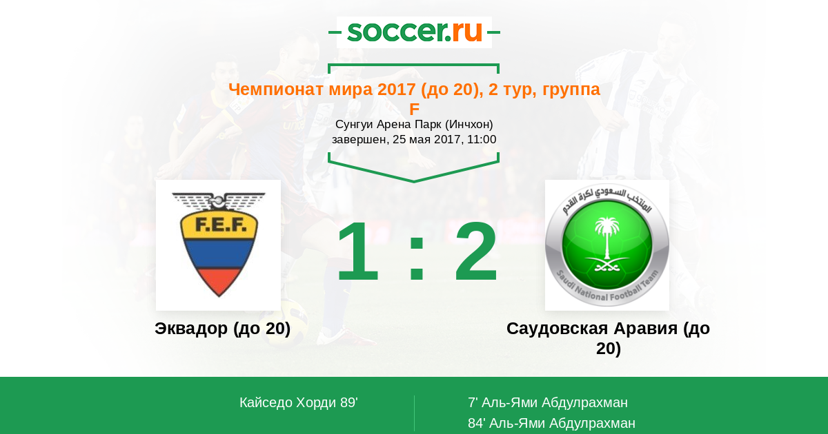 Протокол матча Эквадор (до 20) против Саудовская Аравия (до 20)