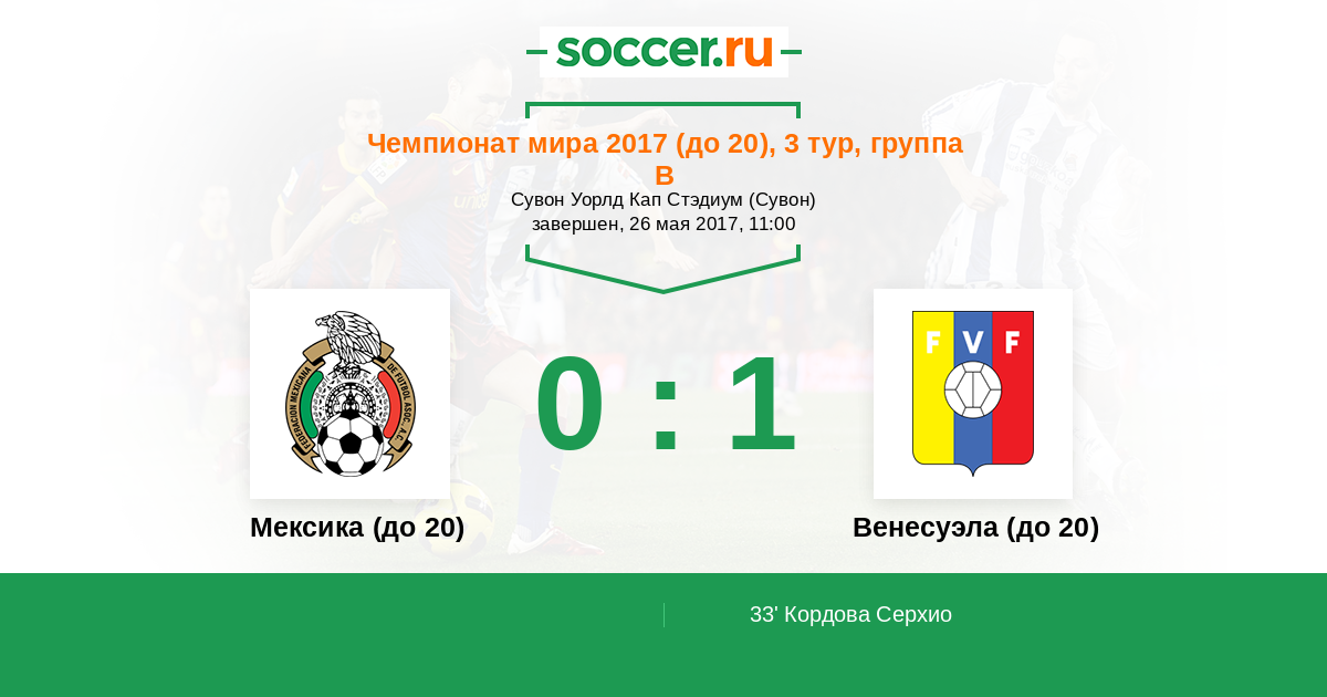 Протокол матча Мексика (до 20) против Венесуэла (до 20)