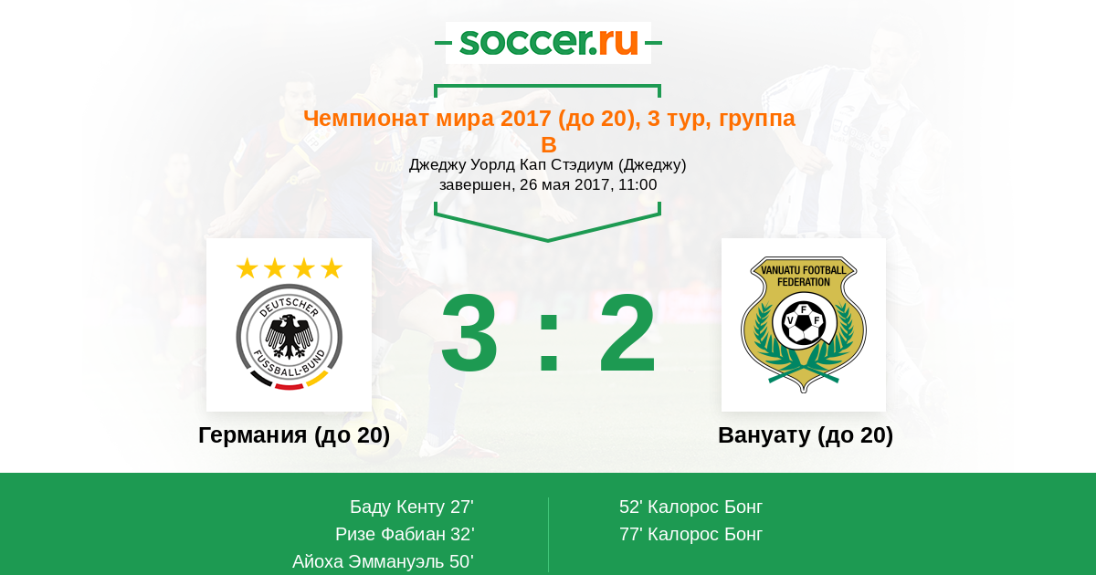Протокол матча Германия (до 20) против Вануату (до 20)