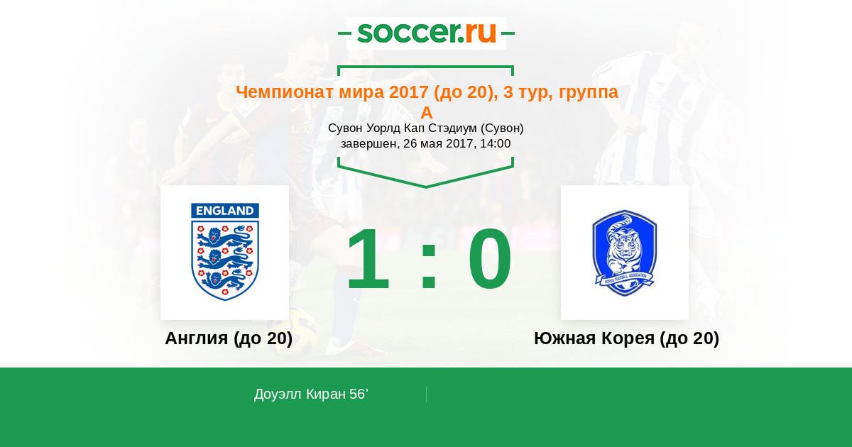 Протокол матча Англия (до 20) против Южная Корея (до 20)