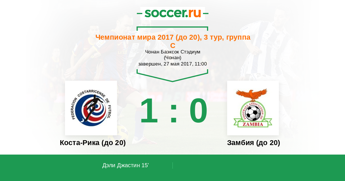 Протокол матча Коста-Рика (до 20) против Замбия (до 20)
