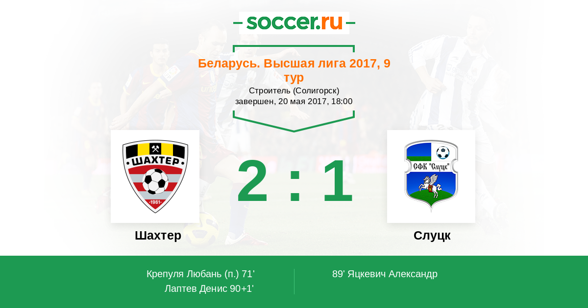 Протокол матча Шахтер против Слуцк