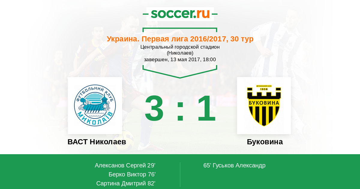 Протокол матча ВАСТ Николаев против Буковина
