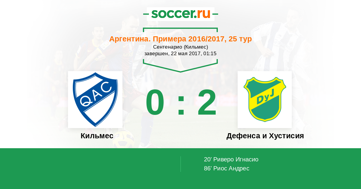 Протокол матча Кильмес против Дефенса и Хустисия