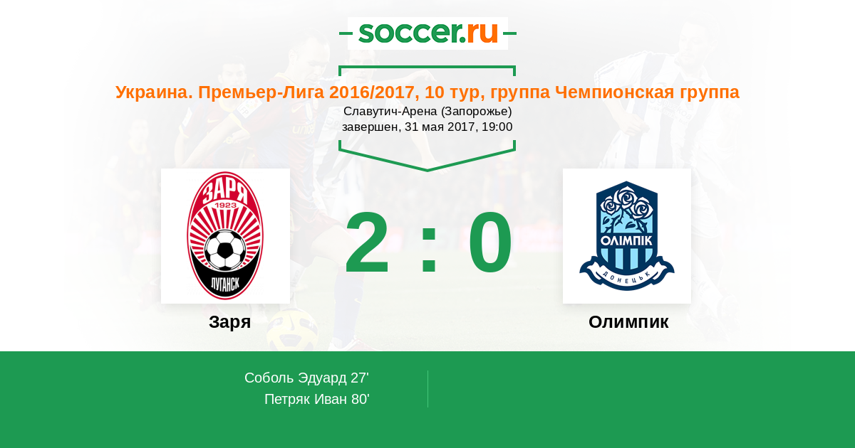 Протокол матча Заря против Олимпик