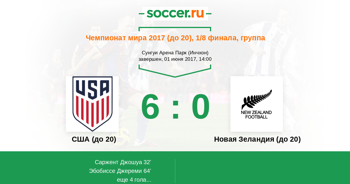 Протокол матча США (до 20) против Новая Зеландия (до 20)