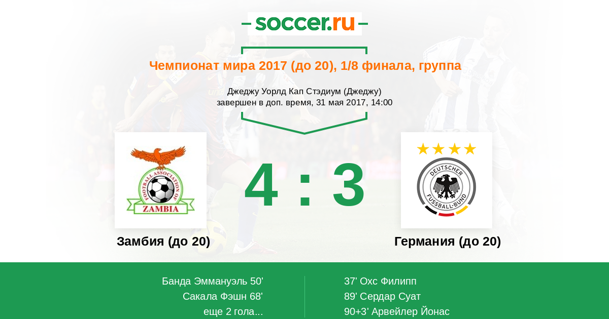 Протокол матча Замбия (до 20) против Германия (до 20)