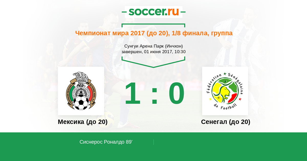 Протокол матча Мексика (до 20) против Сенегал (до 20)