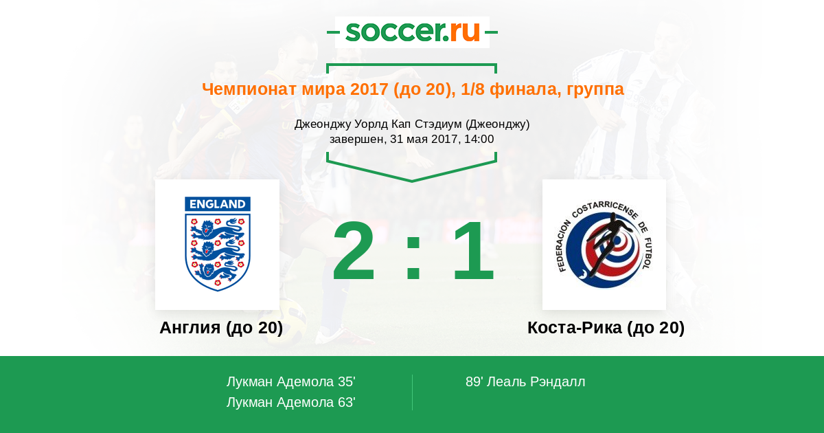 Протокол матча Англия (до 20) против Коста-Рика (до 20)