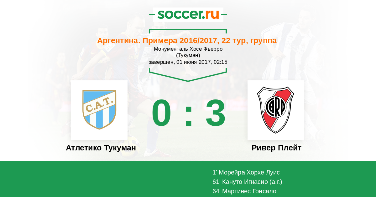 Протокол матча Атлетико Тукуман против Ривер Плейт