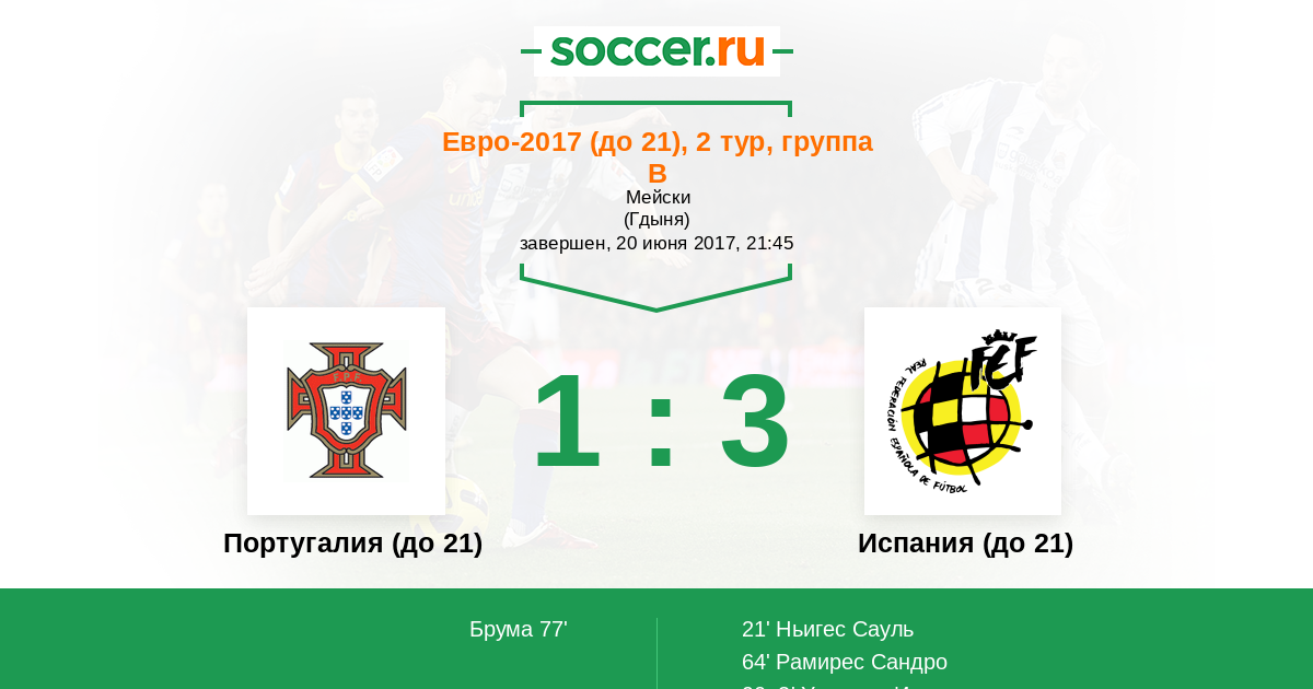 Протокол матча Португалия (до 21) против Испания (до 21)