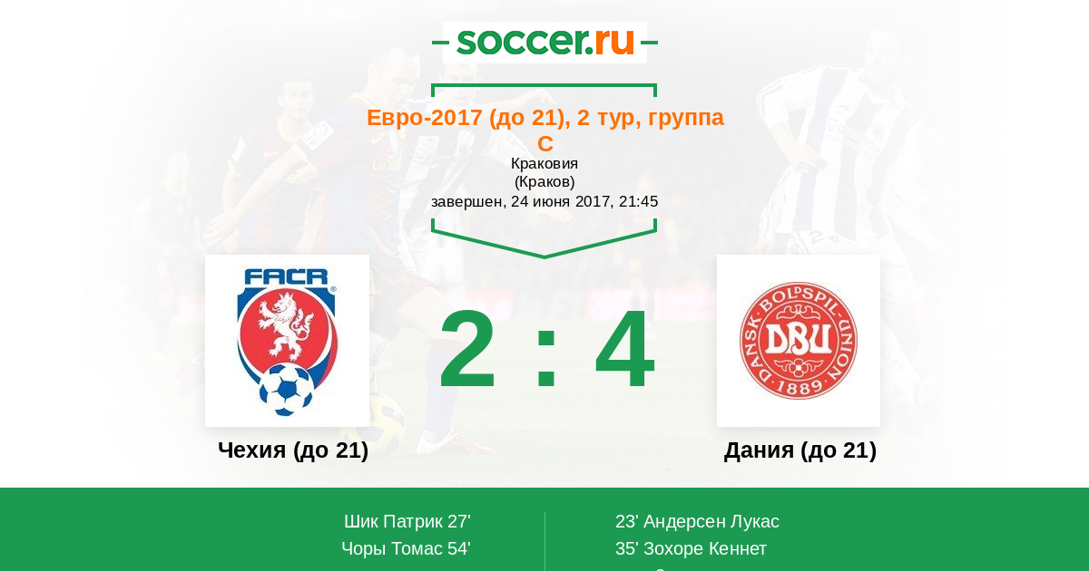 Протокол матча Чехия (до 21) против Дания (до 21)