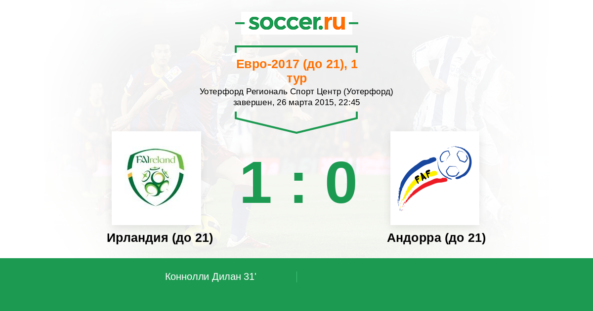 Протокол матча Ирландия (до 21) против Андорра (до 21)