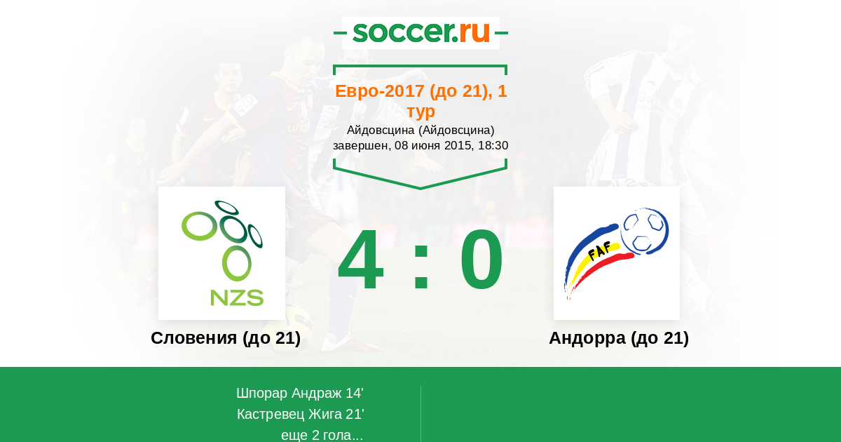 Протокол матча Словения (до 21) против Андорра (до 21)