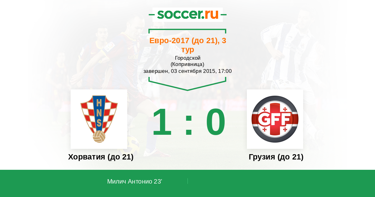 Протокол матча Хорватия (до 21) против Грузия (до 21)