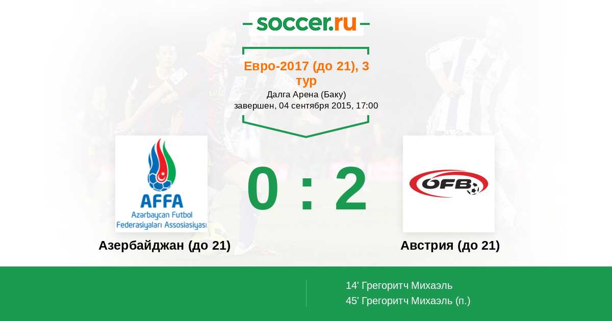Протокол матча Азербайджан (до 21) против Австрия (до 21)