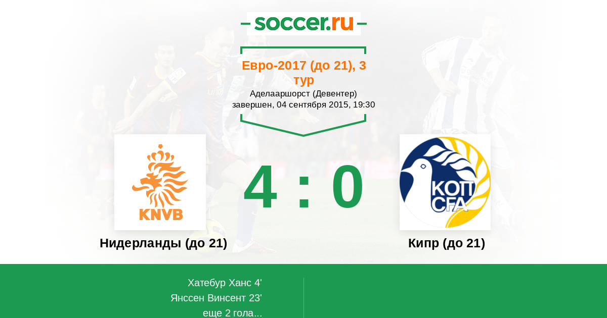 Протокол матча Нидерланды (до 21) против Кипр (до 21)