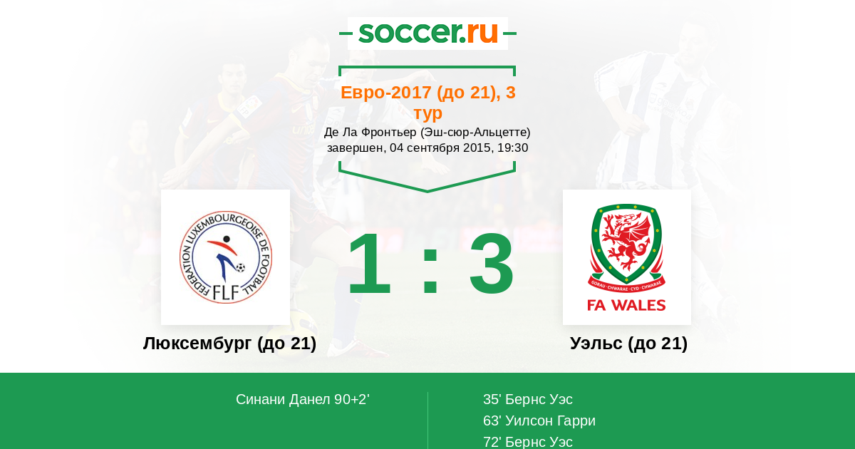 Протокол матча Люксембург (до 21) против Уэльс (до 21)