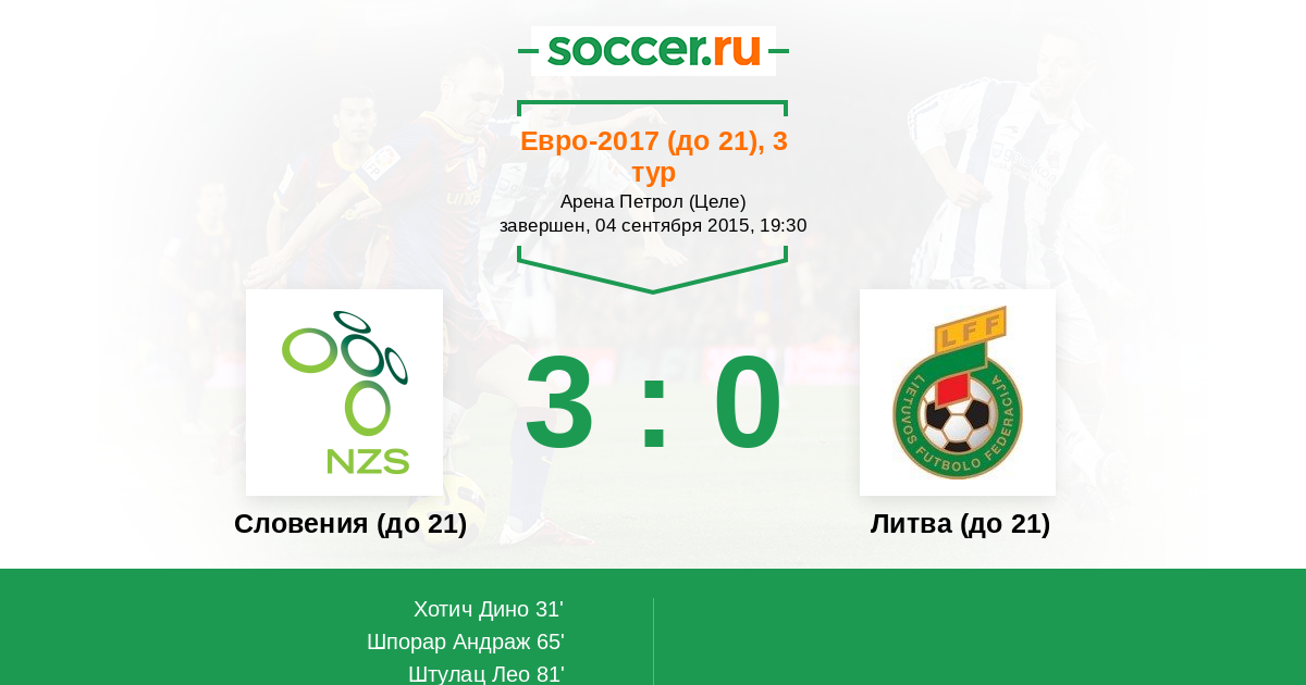 Протокол матча Словения (до 21) против Литва (до 21)
