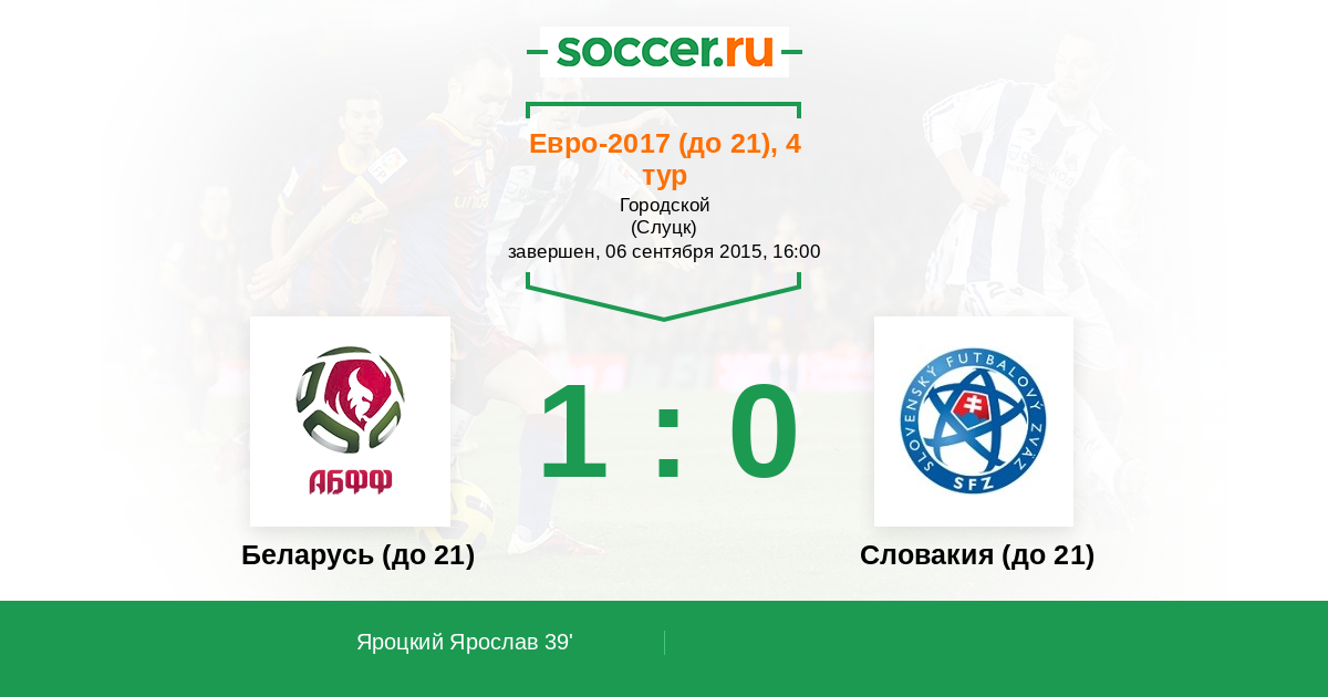 Протокол матча Беларусь (до 21) против Словакия (до 21)