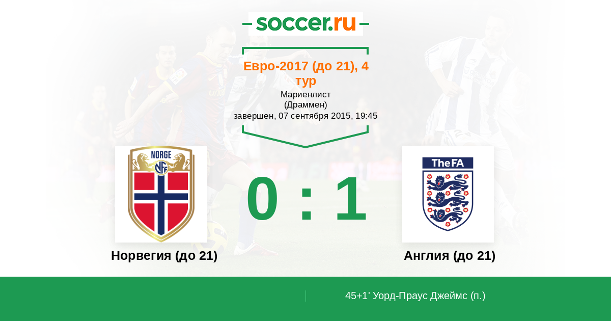 Протокол матча Норвегия (до 21) против Англия (до 21)