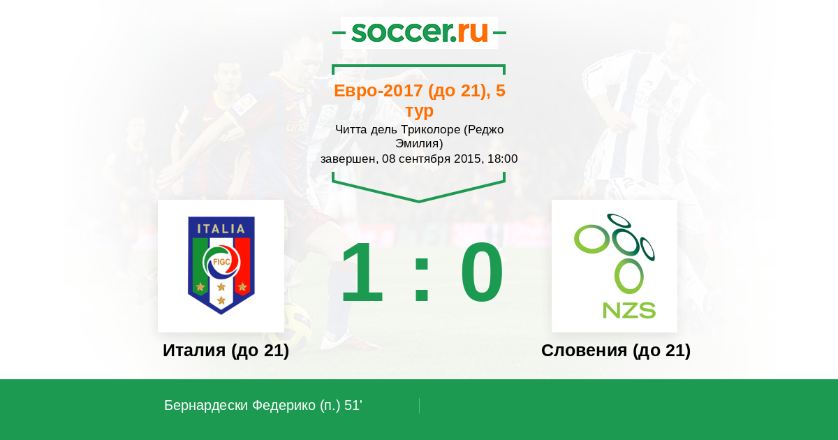 Протокол матча Италия (до 21) против Словения (до 21)