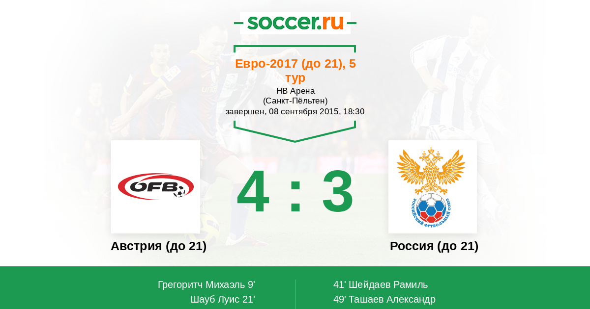 Протокол матча Австрия (до 21) против Россия (до 21)