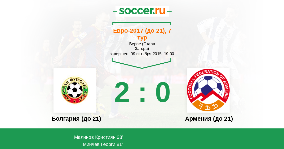 Протокол матча Болгария (до 21) против Армения (до 21)