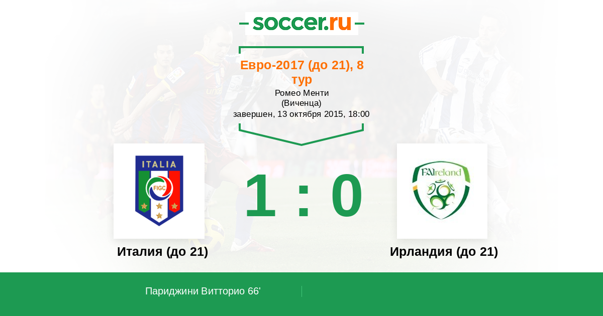 Протокол матча Италия (до 21) против Ирландия (до 21)
