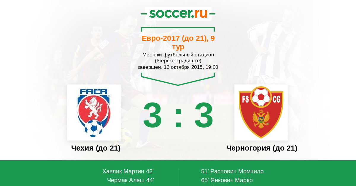 Протокол матча Чехия (до 21) против Черногория (до 21)
