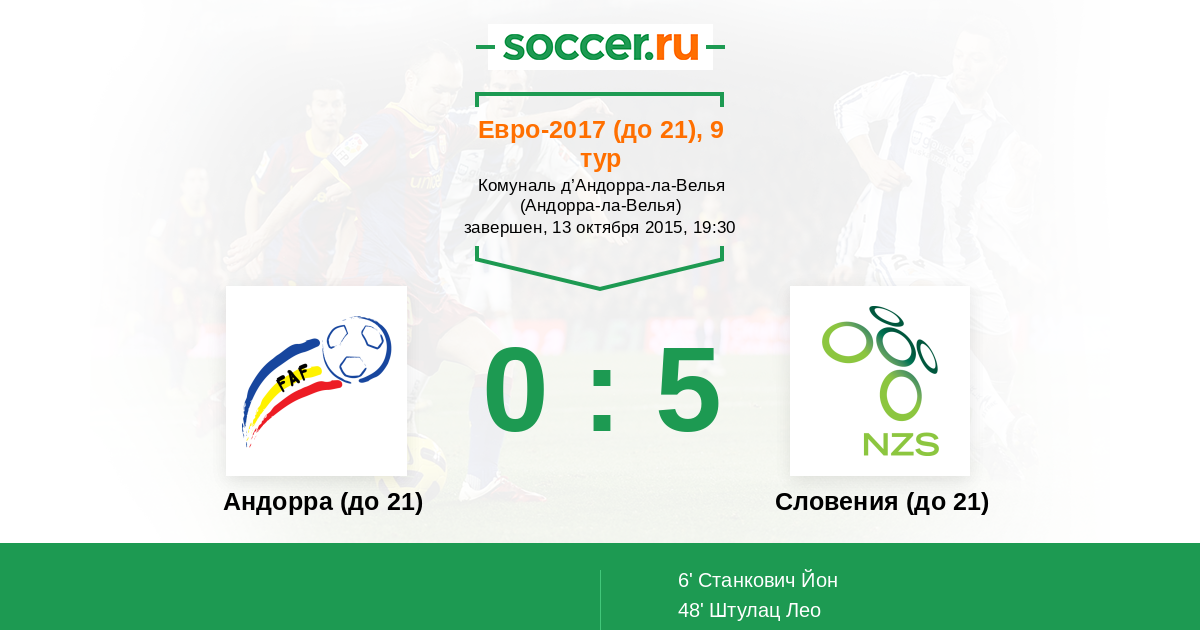Протокол матча Андорра (до 21) против Словения (до 21)