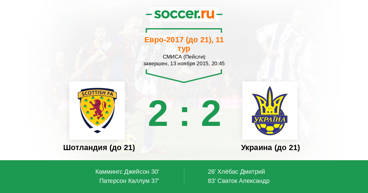 Протокол матча Шотландия (до 21) против Украина (до 21)