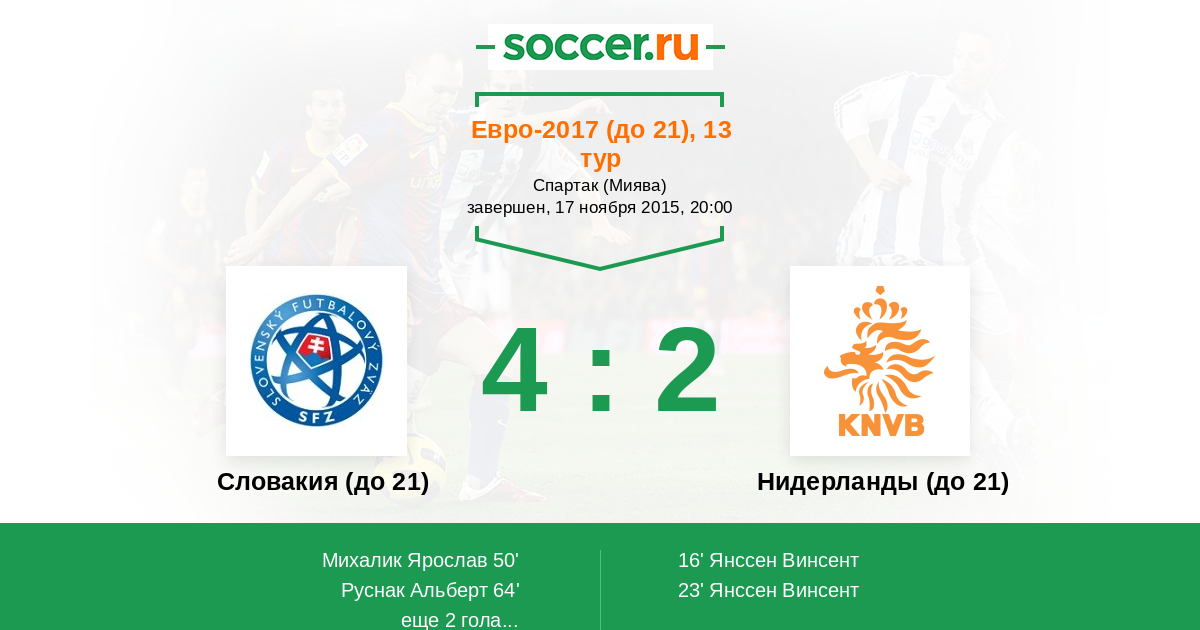 Протокол матча Словакия (до 21) против Нидерланды (до 21)