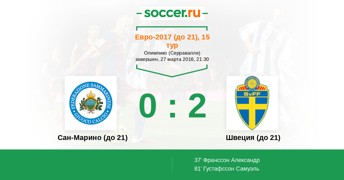 Протокол матча Сан-Марино (до 21) против Швеция (до 21)