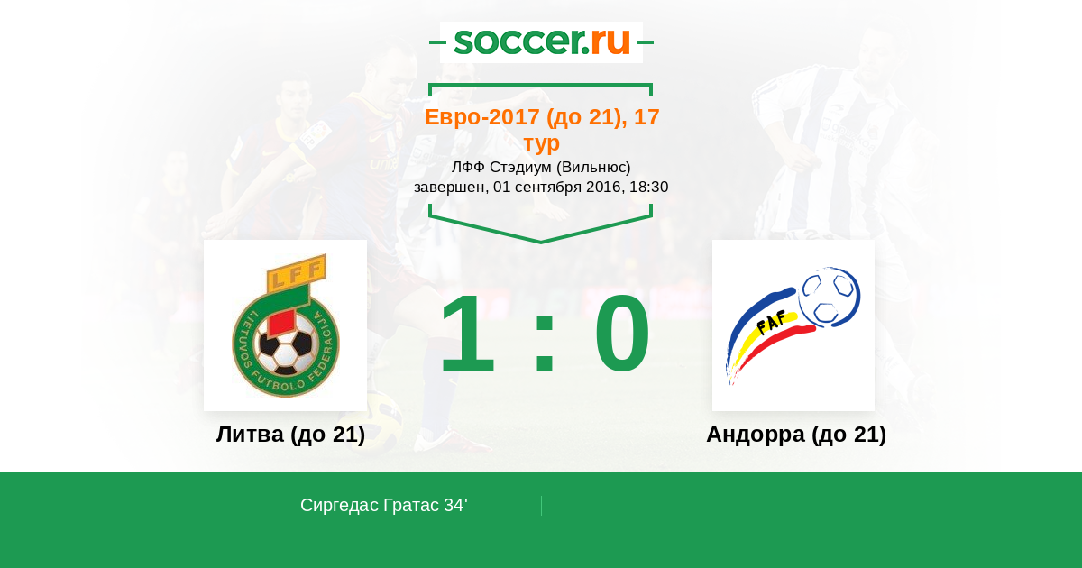 Протокол матча Литва (до 21) против Андорра (до 21)