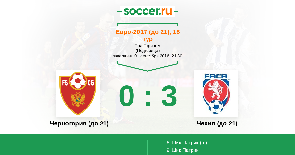 Протокол матча Черногория (до 21) против Чехия (до 21)