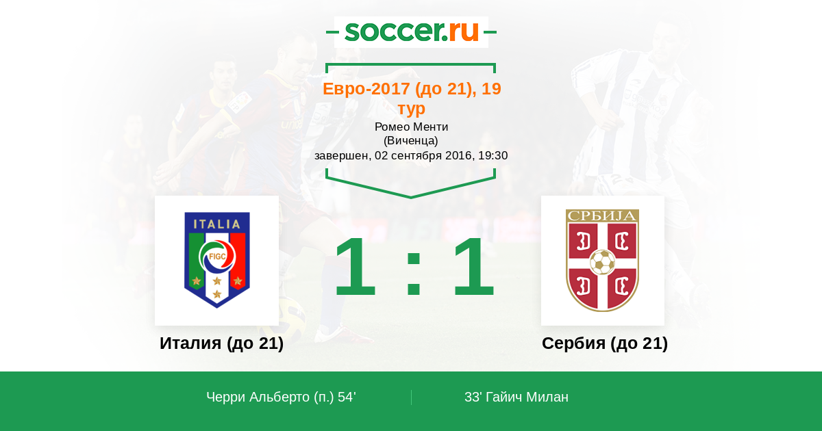 Протокол матча Италия (до 21) против Сербия (до 21)