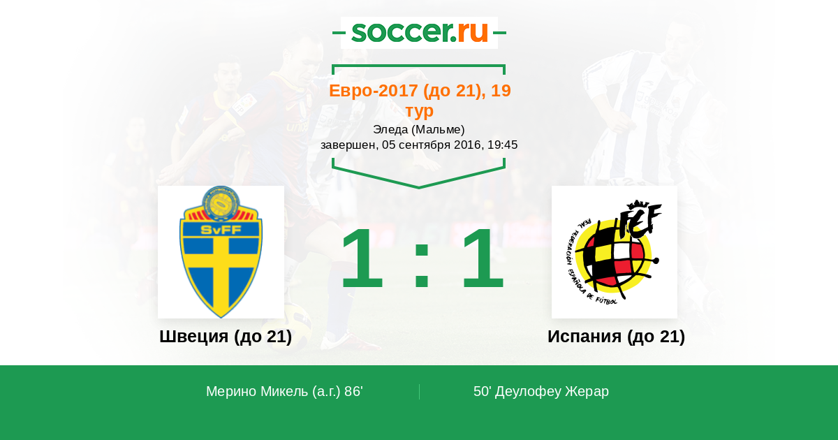 Протокол матча Швеция (до 21) против Испания (до 21)