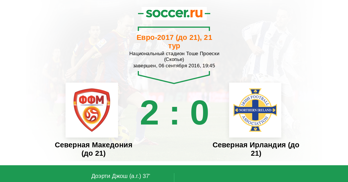 Протокол матча Северная Македония (до 21) против Северная Ирландия (до 21)