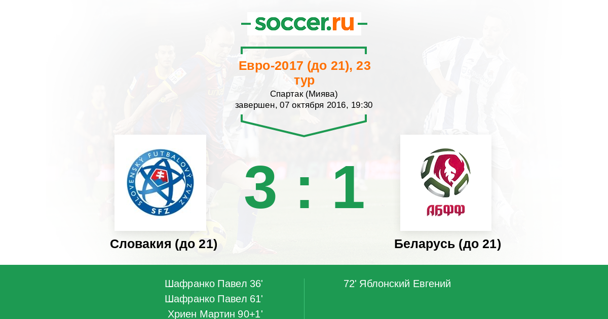 Протокол матча Словакия (до 21) против Беларусь (до 21)