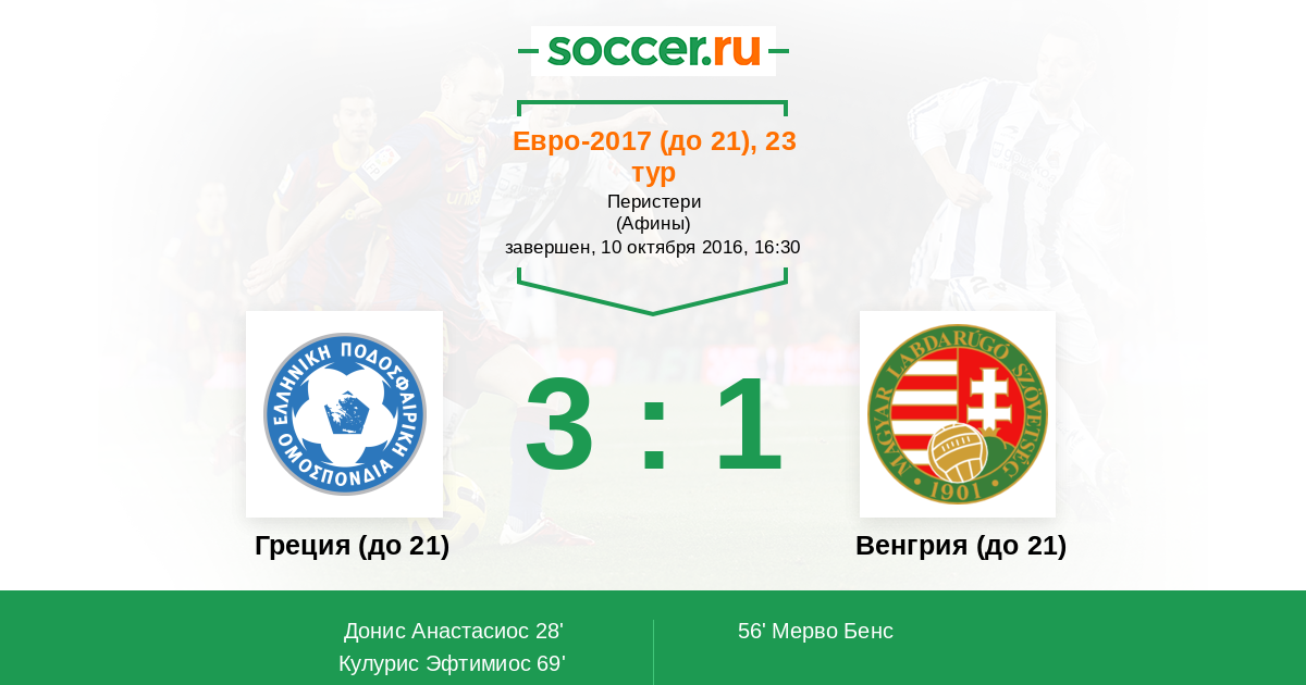 Протокол матча Греция (до 21) против Венгрия (до 21)