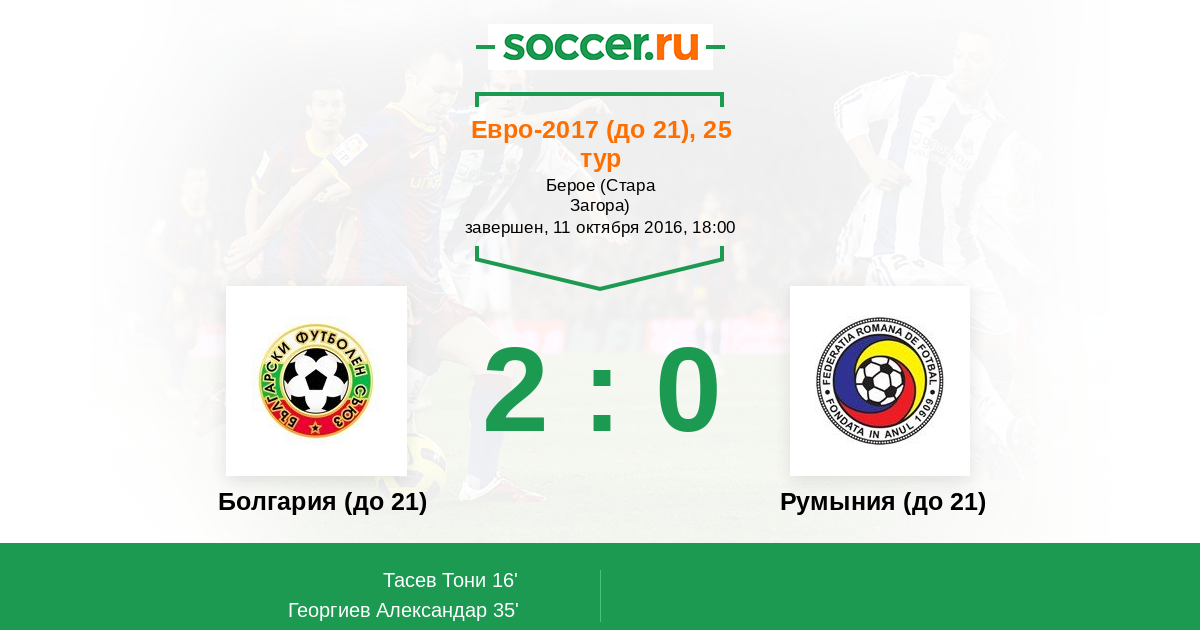 Протокол матча Болгария (до 21) против Румыния (до 21)