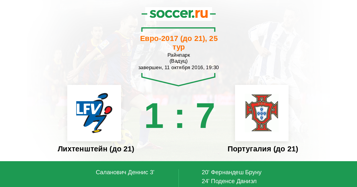 Протокол матча Лихтенштейн (до 21) против Португалия (до 21)