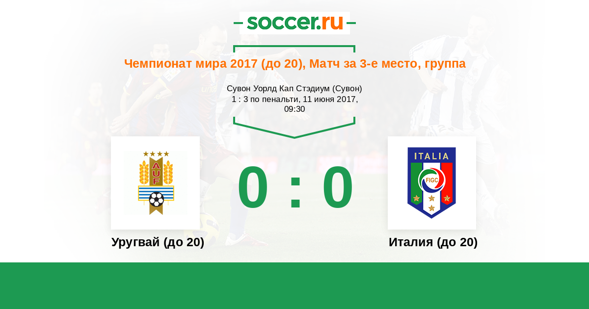 Протокол матча Уругвай (до 20) против Италия (до 20)