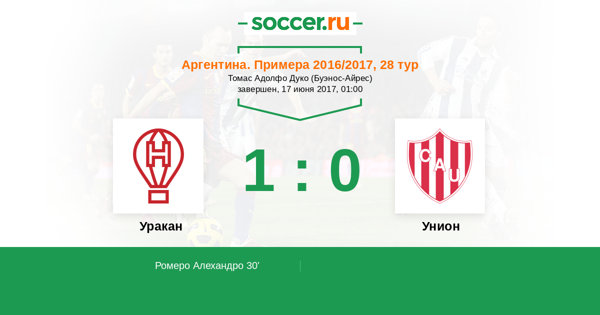 Протокол матча Уракан против Унион