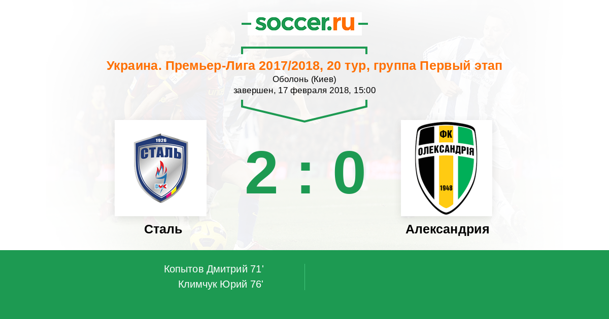 Протокол матча Сталь против Александрия