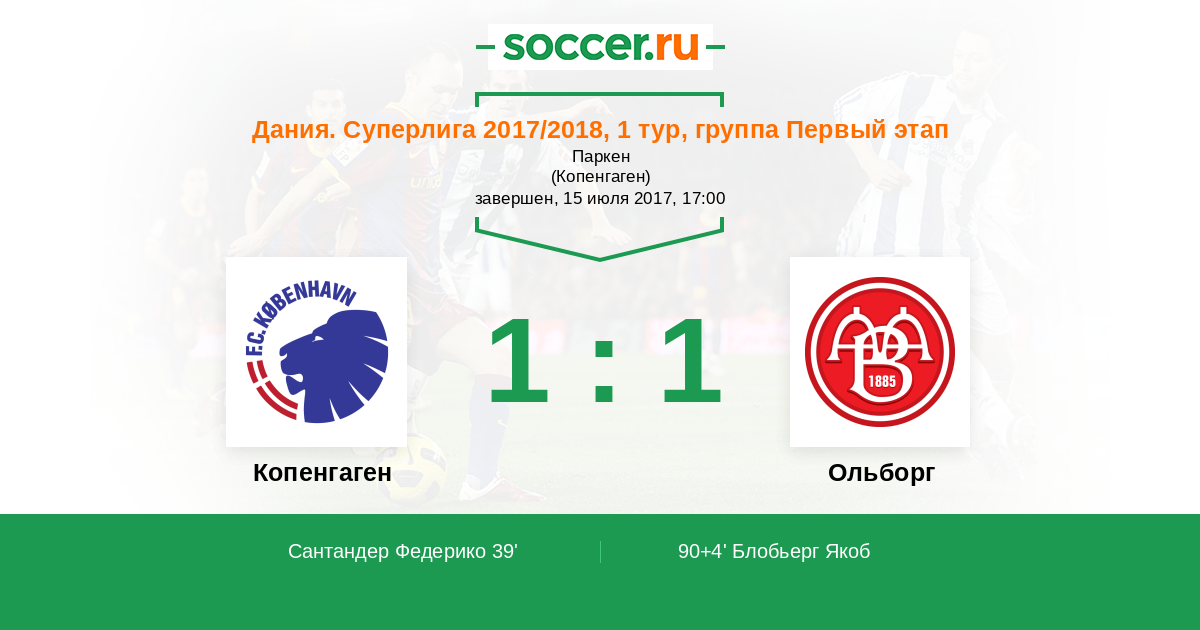 Протокол матча Копенгаген против Ольборг