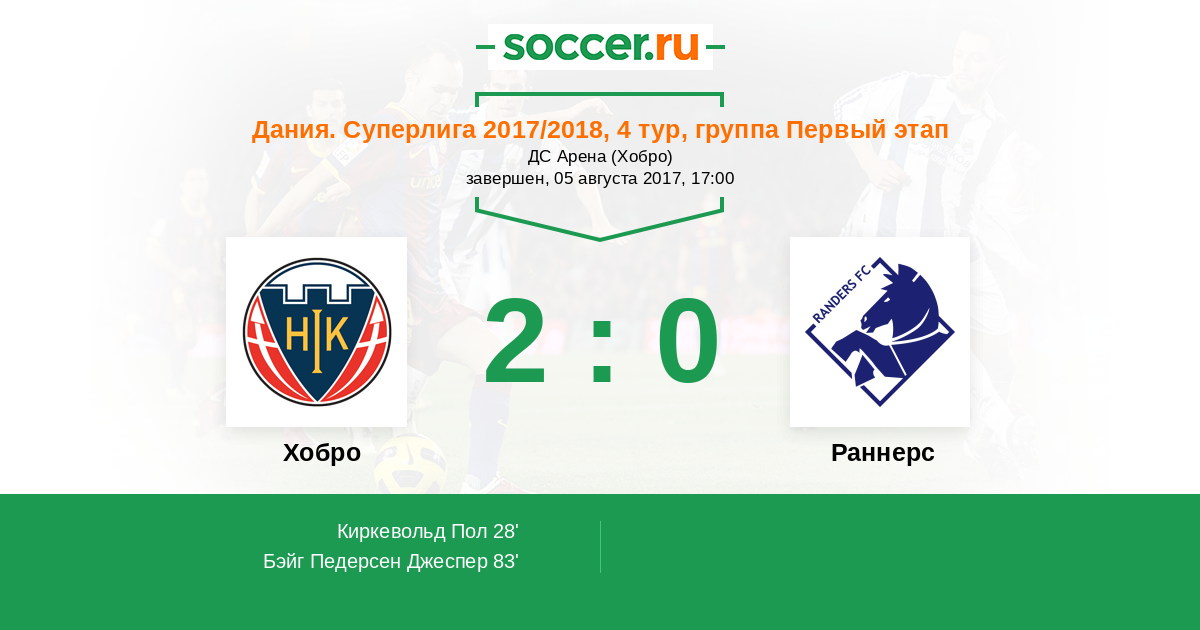 Протокол матча Хобро против Раннерс