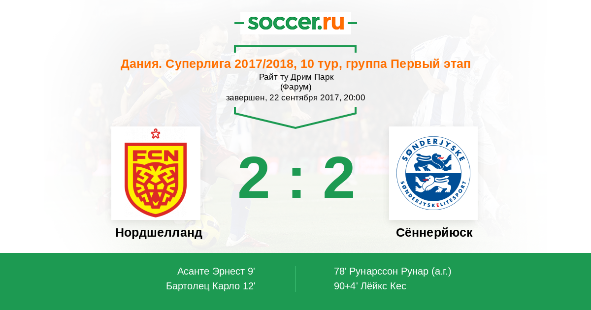 Протокол матча Нордшелланд против Сённерйюск